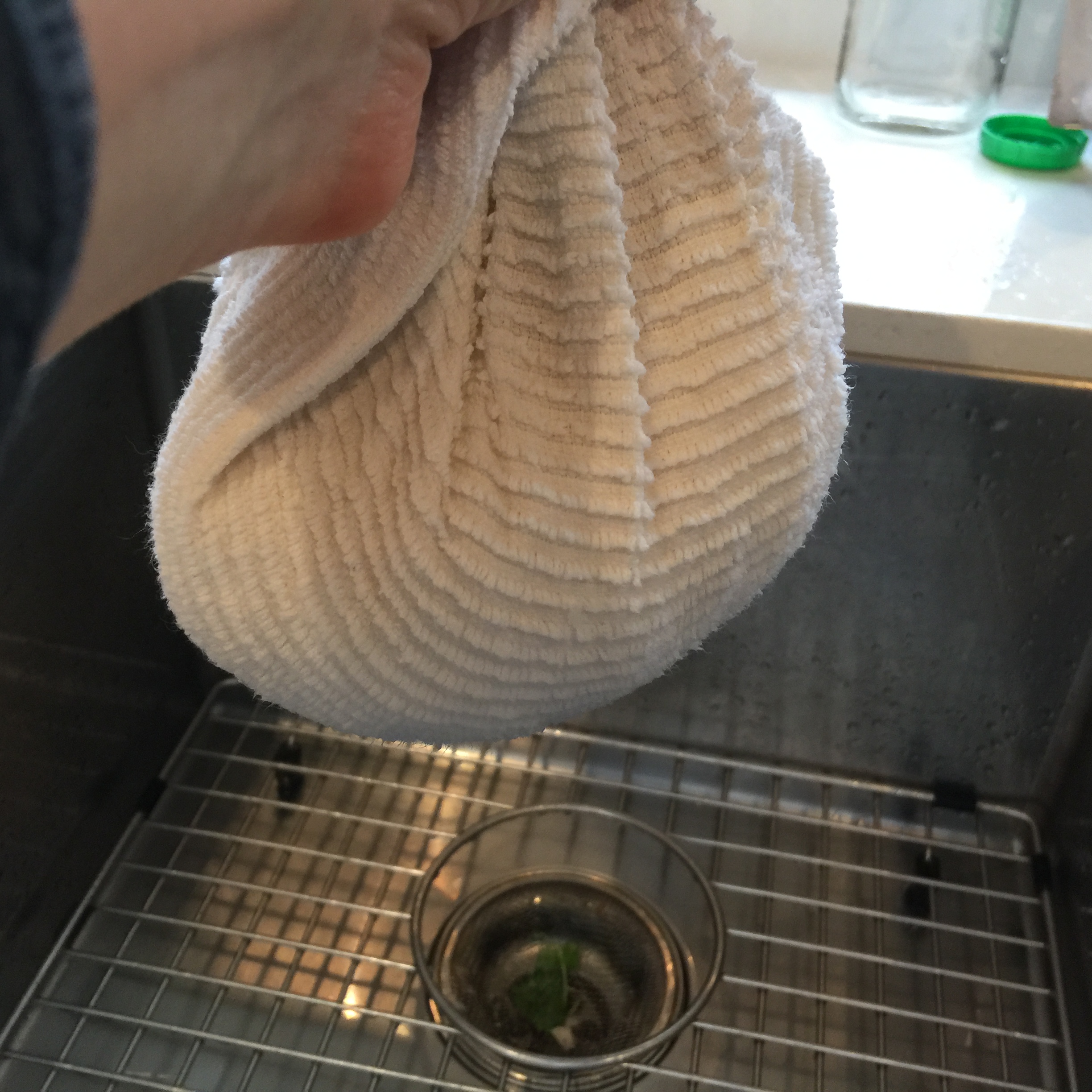 Put 2 colanders in sink and have a large bowl ready to mix all ingredients.