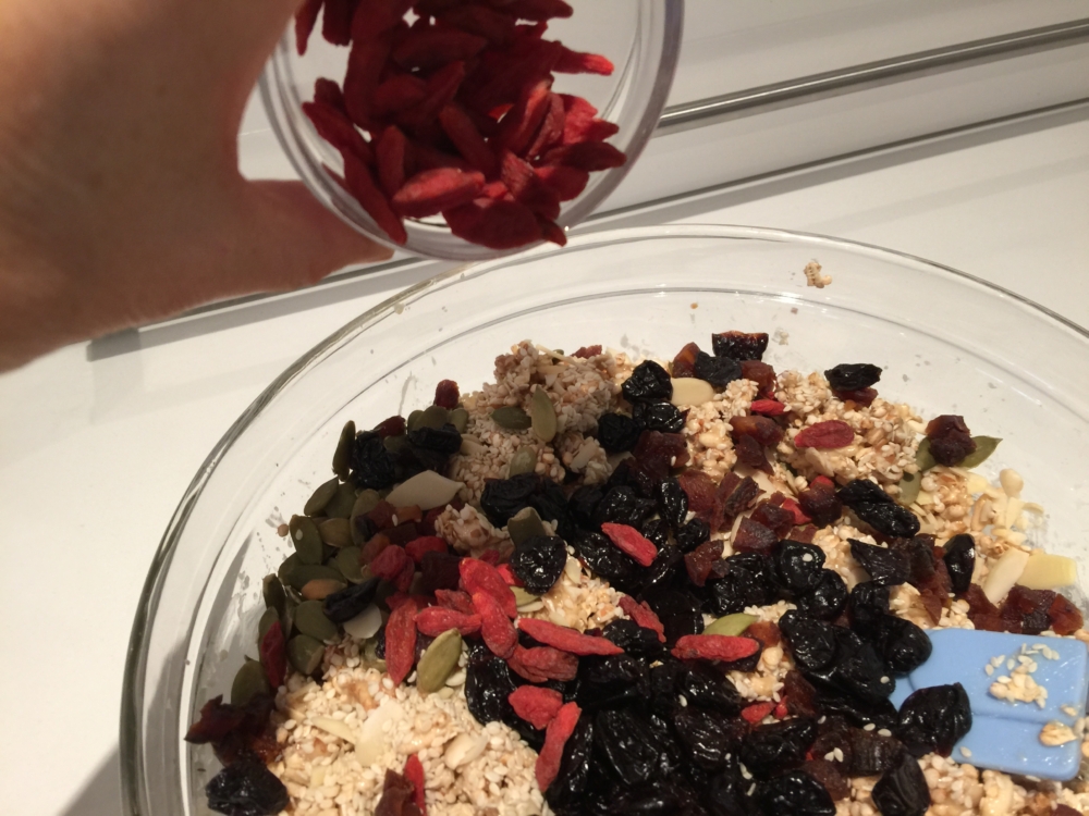 1/2 cup dried raisins (I used dried cherries and goji berries instead)
