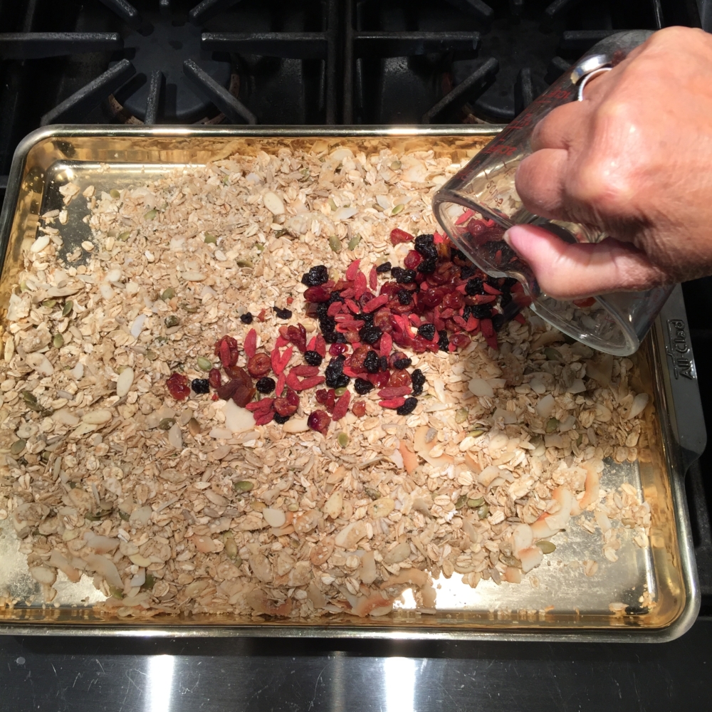 - 7) Add dried fruit, combine and cool before storing. Enjoy!