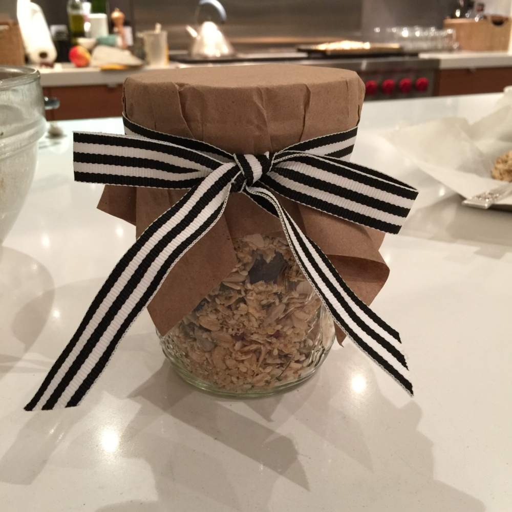To make this recipe SUPER easy, here’s a tip my mom taught me. When you are planning to make a batch, BEFORE you shop, bring a measuring cup and your recipe to the bulk store. That way, you can buy and pre-measure all the ingredients you need so that when you get home to make the granola, it’s just a matter of dumping everything in your bags into the bowl! Brilliant! Right? Below is the recipe and here’s the link to the post that has the video demo that shows you how simple it is. If you want to make a gift of your granola, check out this “Mason Jar Makeover” video demo because it’s so easy to do. Enjoy! And if you like what you see, please subscribe to my YouTube channel.